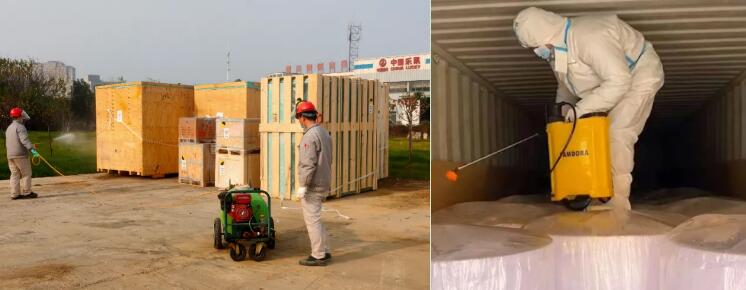 中國(guó)樂(lè)凱集團(tuán)公共事業(yè)部嚴(yán)格落實(shí)防疫要求,進(jìn)口到貨采取“多重消毒”,即進(jìn)口集裝箱進(jìn)入卸料區(qū)后,由消毒人員對(duì)車(chē)輛和集裝箱進(jìn)行整體的外部消毒;打開(kāi)集裝箱箱門(mén)后,消毒人員進(jìn)入集裝箱,對(duì)箱內(nèi)貨物進(jìn)行二次消毒 ,貨物卸車(chē)后消毒人員對(duì)貨物進(jìn)行全方位消毒。中高風(fēng)險(xiǎn)區(qū)到貨采取卸貨后集中全方位消毒。